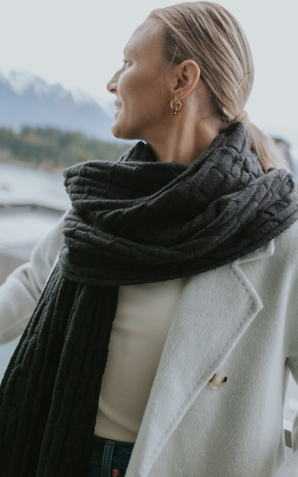 Timeless, textured, and effortlessly warm, the Adele Cable Knit Scarf is the perfect finishing touch to any winter outfit. Designed as Moke’s step into cold-weather accessories, Adele brings classic knitwear styling together with everyday practicality. Crafted in a beautiful cable knit design, this women’s scarf offers cosy warmth while adding depth and texture to your look. Soft and comfortable to wear, Adele is designed to layer seamlessly over coats, jackets, and knitwear, making it the ideal companion to your favourite Moke outerwear.