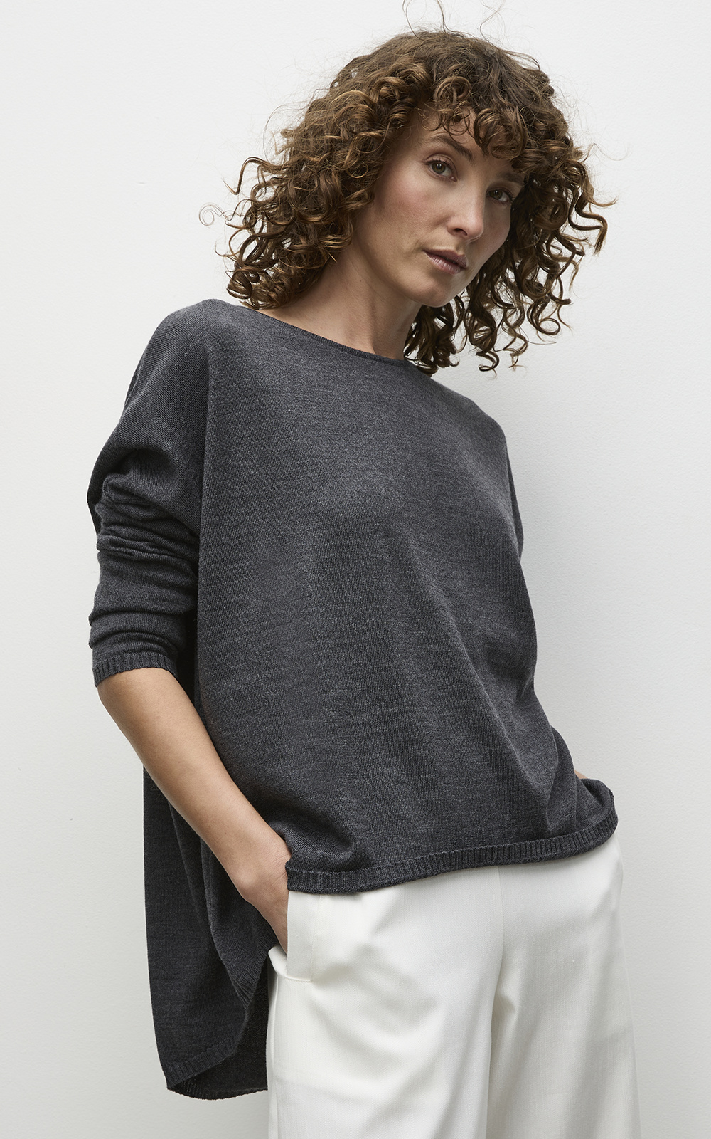Knitted from sumptuously soft, extra-fine Merino Wool, the Arc Sweater is a classic piece that strikes the perfect balance—not too thin yet not too heavy, making it ideal for all seasons. It features a boat neck, dropped shoulders with fitted sleeves, and a longer back hem. The ribbed details on the hem and cuffs add a touch of texture, making this sweater both stylish and versatile.