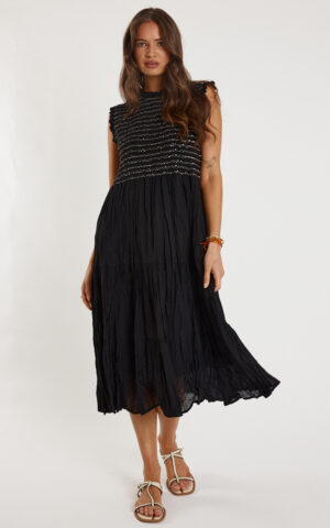 Subtle bits of colour make this darker-toned ensemble mysteriously charming. Combine these for an eye-catching allure.