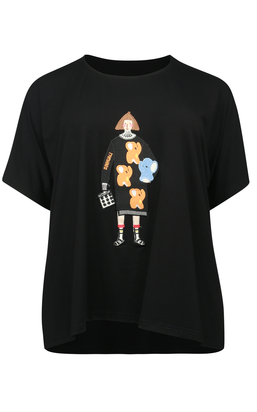 A playful twist on everyday style, the Baggy Tee is crafted from soft viscose stretch knit for comfort and ease. Featuring a relaxed fit, scoop neckline, short sleeves, and an embroidered appliqué, it pairs effortlessly with jeans, skirts, or your favourite casual layers.