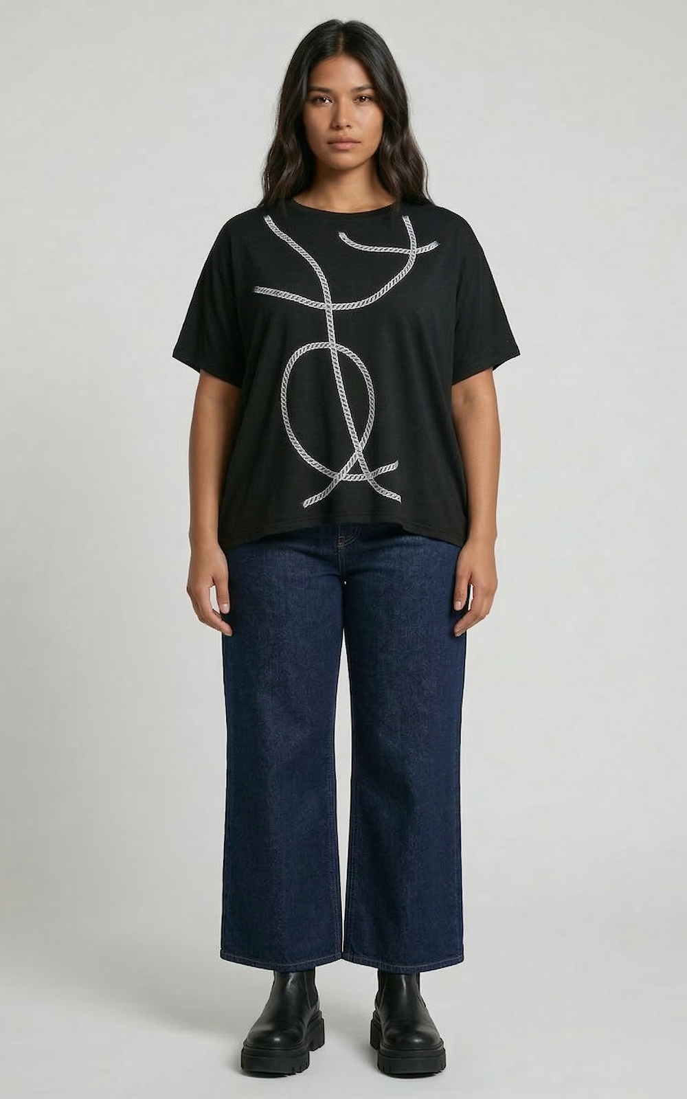 A bold twist on everyday dressing, the Baggy Tee features an abstract front print on soft viscose stretch knit. Designed with a relaxed fit, scoop neckline, and short sleeves, it pairs effortlessly with jeans or skirts — proudly made in New Zealand.