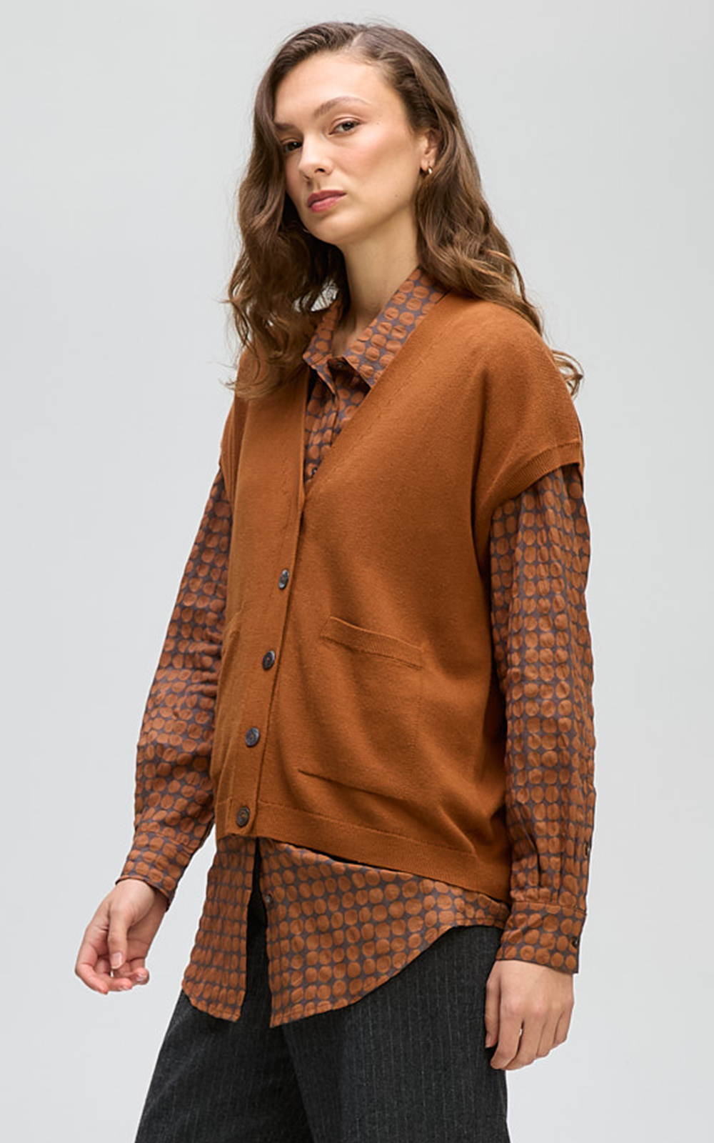 A vest is a fun and versatile addition to any wardrobe. The Button Vest is crafted from a super-soft, cotton-rich midweight knit, featuring a V-neck, extended sleeves, front patch pockets, and ribbed detailing. Wear it buttoned over shirts or unbuttoned over dresses, perfect for layering without getting too hot.