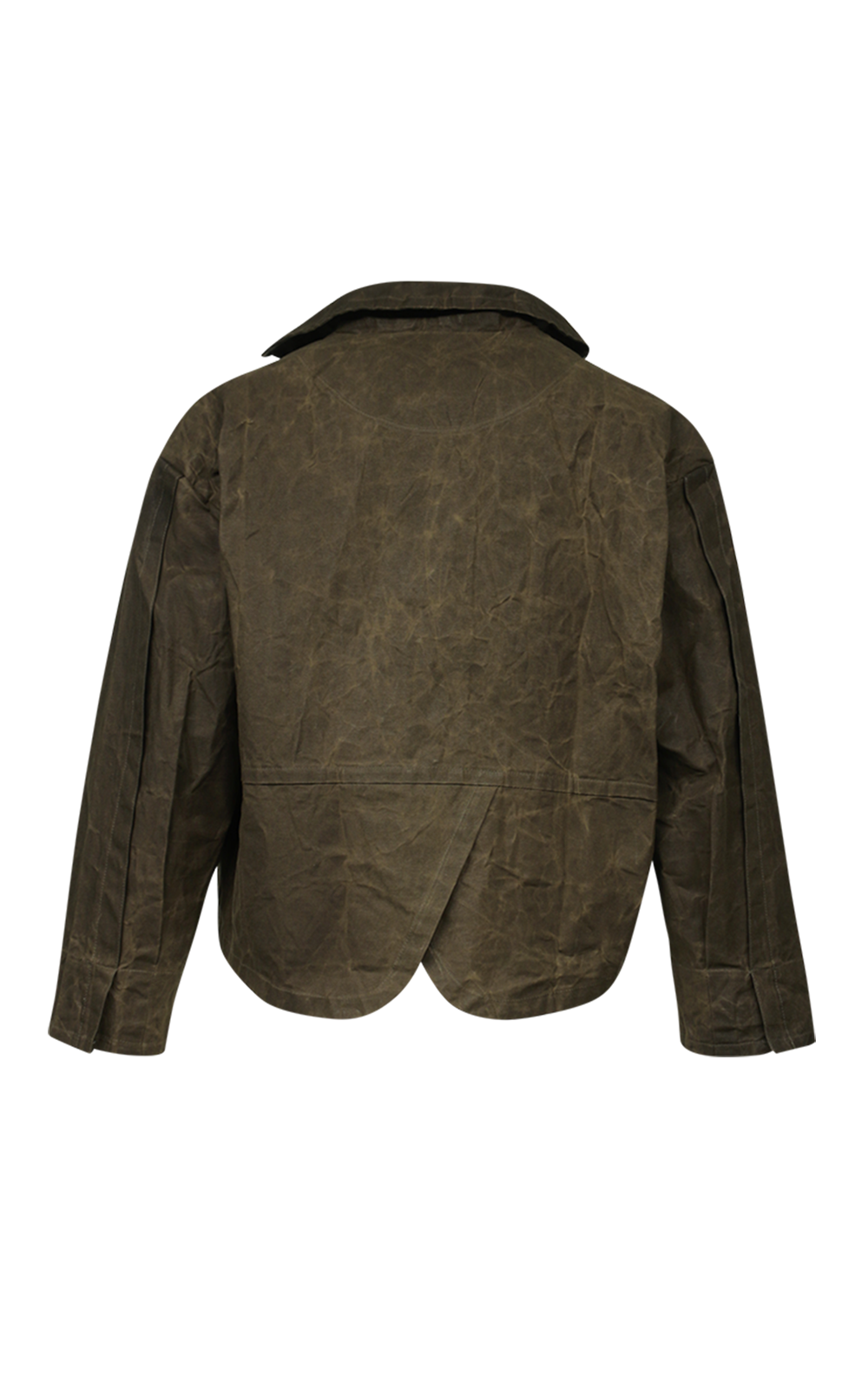 The Chopper Jacket is an edgy cropped style designed with structure and personality. Crafted in waxed cotton, this jacket holds shape and character – scrunch it, crease it, wear it hard – it keeps the texture and only gets better with time. Featuring a rever collared front, two button closure and flap pockets, with curved edges finishing the collar and front hem. This is a great transeasonal jacket, perfect for pairing with a cocoon shaped dressed, skirts or barrel legged jeans; taking you from day into evening with ease. *Note This is a unique fabric, and each garment will have its own individual markings. Follow the care instructions on the label inside the garment. Please do not steam directly onto fabric outer, and only iron with a towel over the garment. To refresh the wax texture, gently heat the fabric with a hot hairdryer until softened (this will remove any spot marks), then scrunch to reshape and create your desired effect.