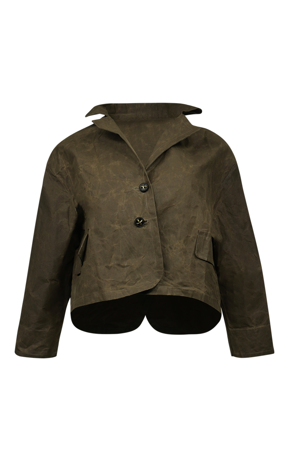 ​The Cinema Tailored Birdie Jacket is a stunning light and breathable piece. This striking jacket serves as the perfect final layer to complement your outfit; it features a dark green oversized polka dot on a cream background and is constructed from 100% woven cotton. A subtle pleat at the mid-back adds a touch of flair, enhancing its slight A-line silhouette, while discreet shoulder pads add a touch of structure. Beautifully finished with French seams, hand-dyed coconut shell buttons and full length sleeves which give breathable coverage. The perfect little summer jacket to layer over shirts, tops or dresses, versatile for day-to-day wear or elegant enough for a special occasion.