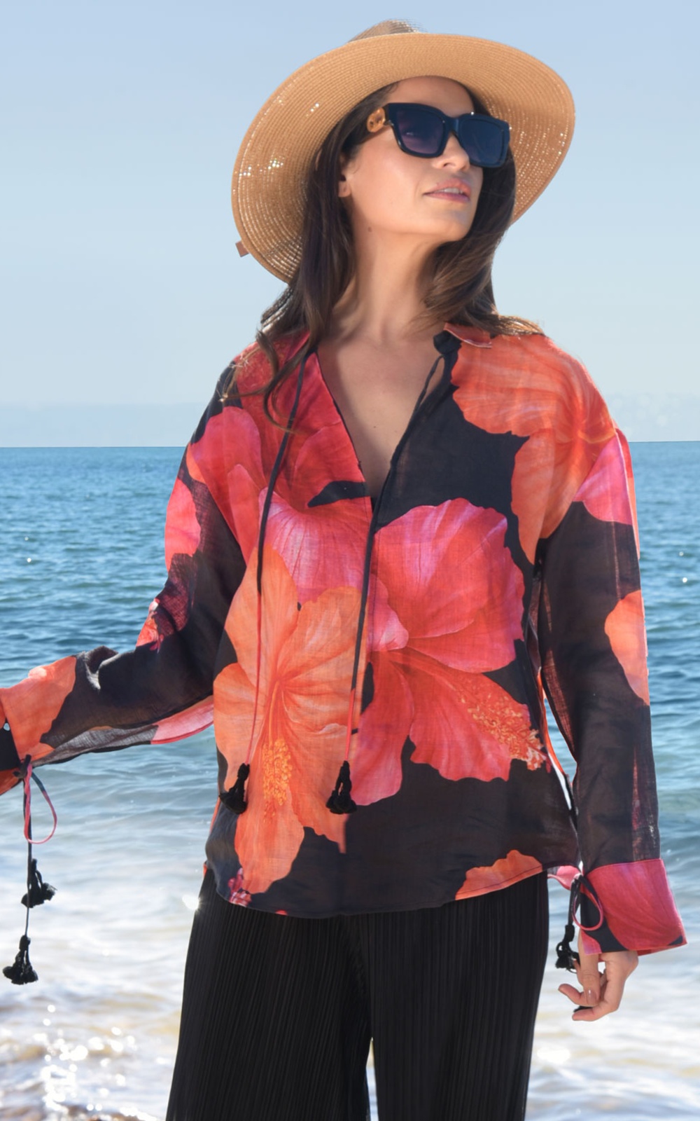 Adorned with tropical inspired cutouts and a scalloped hemline, the ‘City Sprints’ pants are a sensational summer addition. Crafted in the cotton, linen blend ‘Clash of the Textures’ fabric, these pants sport an elasticated waistband and generously wide leg, making them a comfortable choice for the fashion lover.