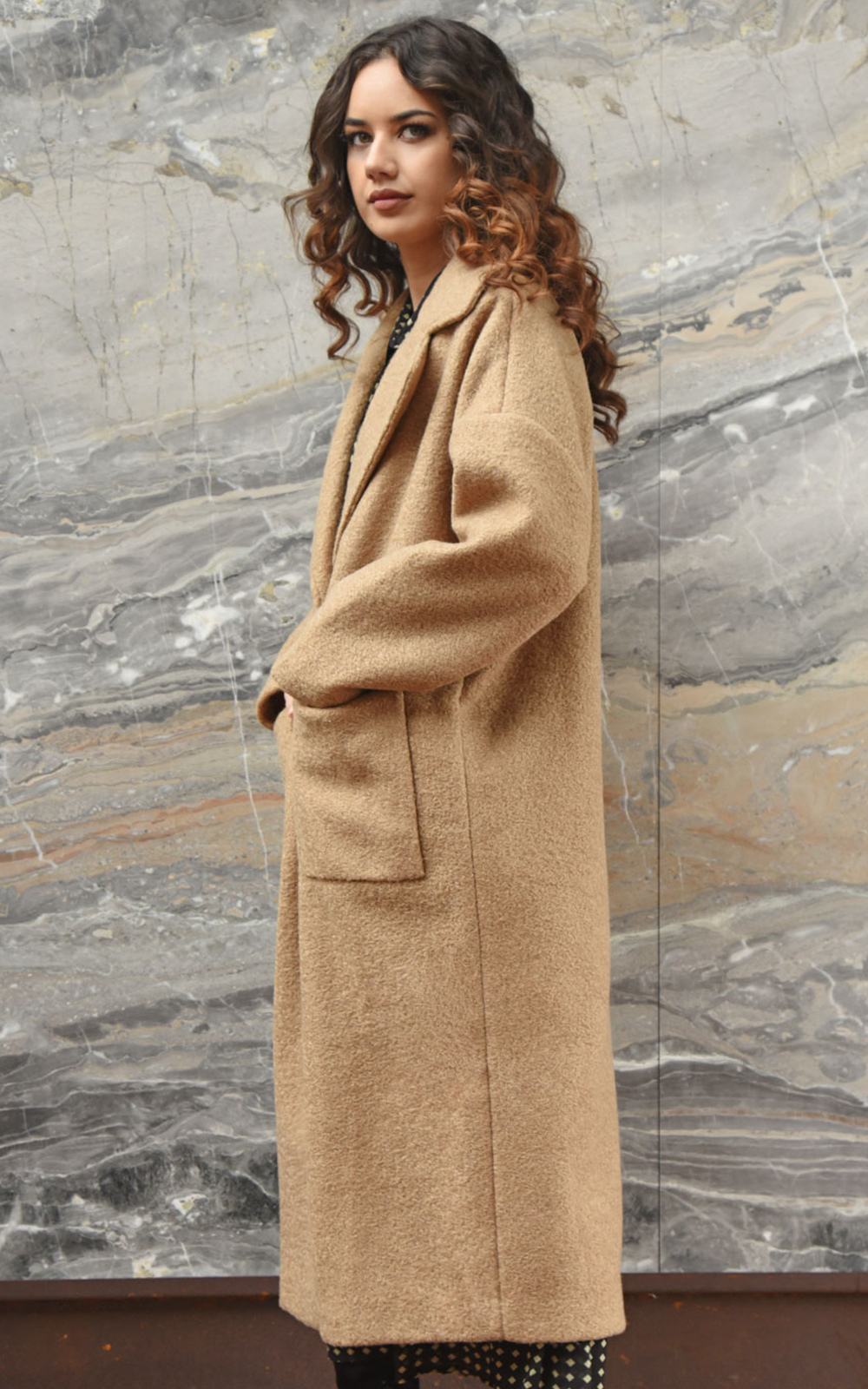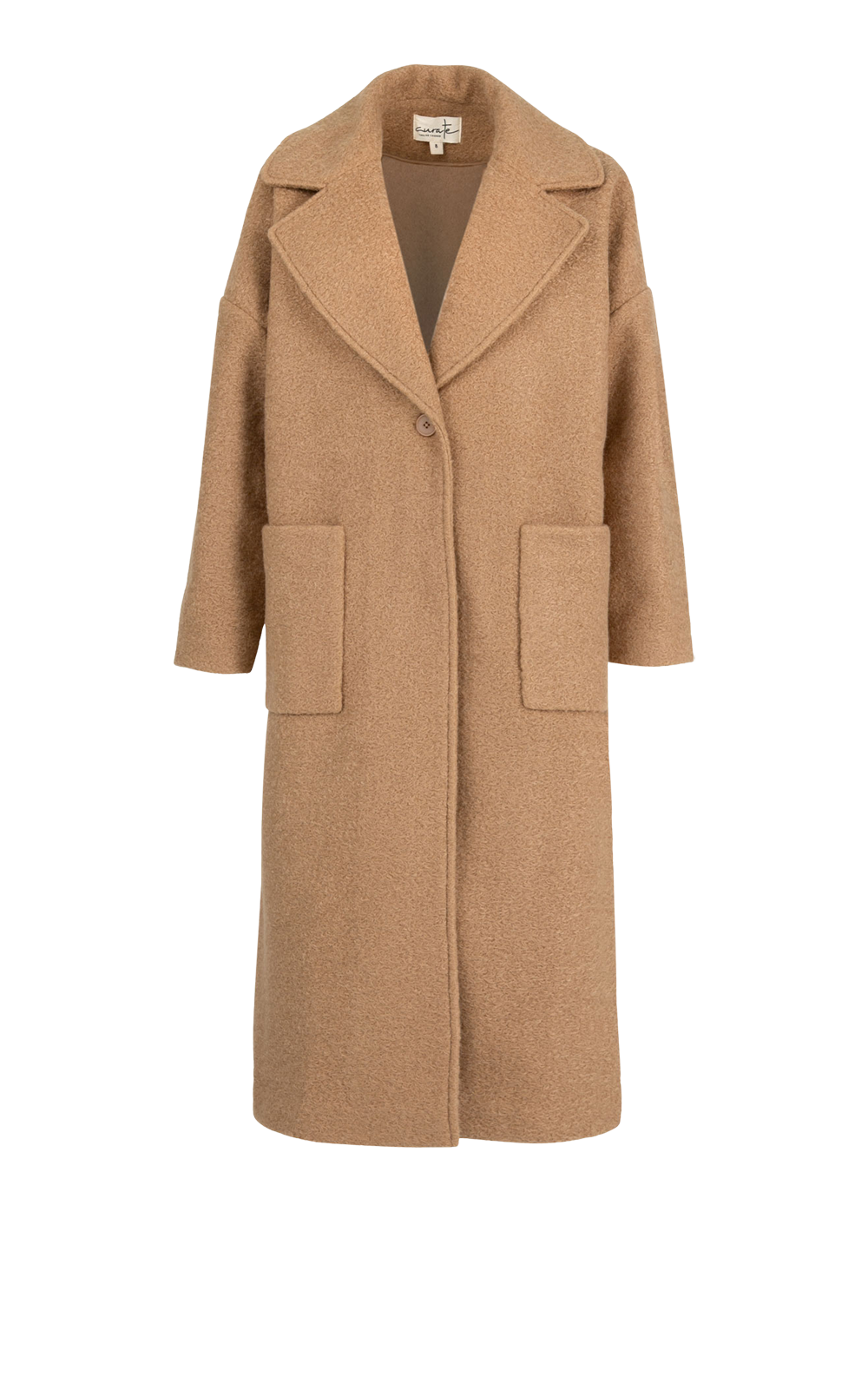 Step into effortless comfort with the ‘Coming Up Cozy’ coat. Draped in soft, textured ‘Warm Front’ bouclé, its relaxed fit and drop shoulders invite a cozy, laid-back silhouette. A single button closure and notched lapels add a touch of classic tailoring, while patch pockets keep it charmingly practical. Unlined for an easy, breezy feel, this coat is your go-to layer for cool days with a warm heart.