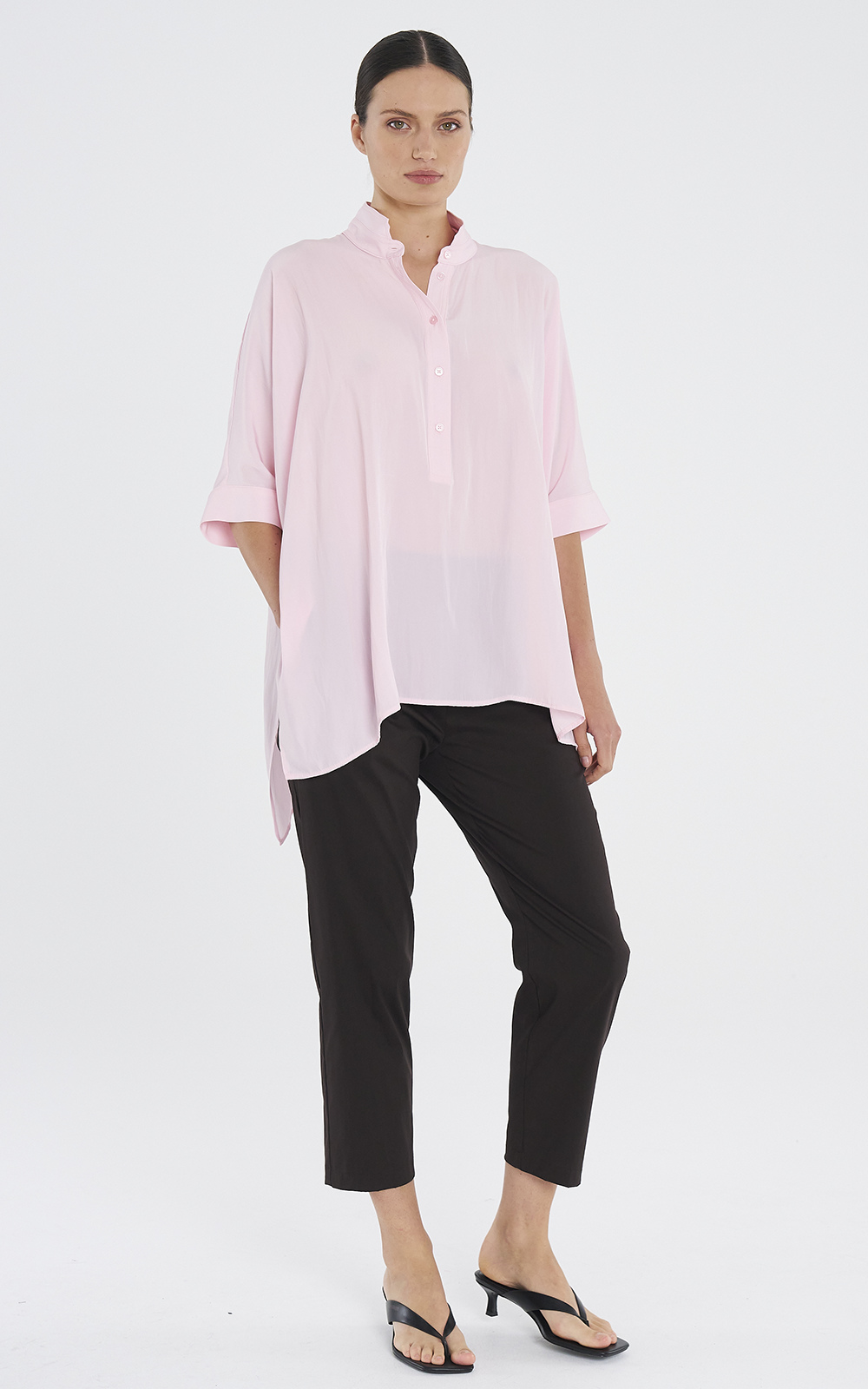 A relaxed way to set off casual looks, the Cropped Tuscan Pants fall from a comfortable elasticated waistband to harem styled pant in Mela Purdie’s cotton rich, stretch Microprene. If you love these pants like we do, see also the 1714F65-MEL Cropped Frame Pant.