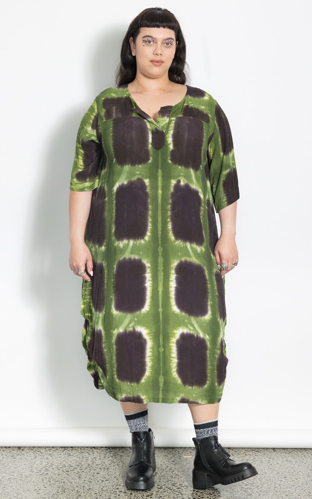 We’re loving Lala’s easy-wear Delaney Dress in the fab Green Squares Batik print. This super comfy pull-on style features an open placket v-neckline, a relaxed elbow grazing sleeve, inseam pockets and clever tuck detail at the hem. This midi length dress will take you from work to weekend with ease; pop over togs, add sneakers for a weekend outing or wedge heeled sandals and a cropped jacket for casual Fridays. You can buy this lovely piece with confidence, proudly designed in NZ, made in Bali and is Fair Trade Certified.