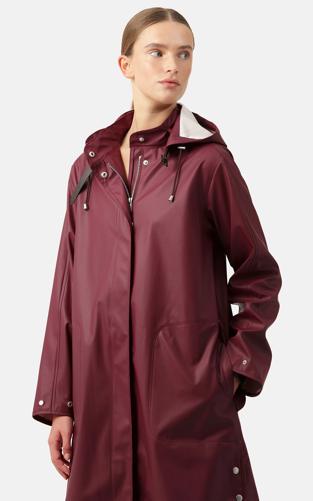 This A-shaped raincoat from Ilse Jacobsen is a modern interpretation of the classic raincoat with a loose fit and details that makes it suitable all year round. Just add a sweater or a quilted layer underneath when the temperature drops! The raincoat is made in a light and subtle waterproof rubberized PU material with a tricot backside, that makes the raincoat extremely comfortable to wear. RAIN71 is – however – much more than just a raincoat. This style has a detachable hood attached by a waterproof strap in artificial leather, two big side seam pockets and adjustable cuffs with a small logo on the left sleeve for perfect fit. The coat is made for rainy days. Whether you are going for a walk, walking the dog, or going fishing, RAIN71 will keep you dry. It is even perfect for a bike ride, as the slits at the side seams with press buttons along the sides, provide extra freedom of movement.
