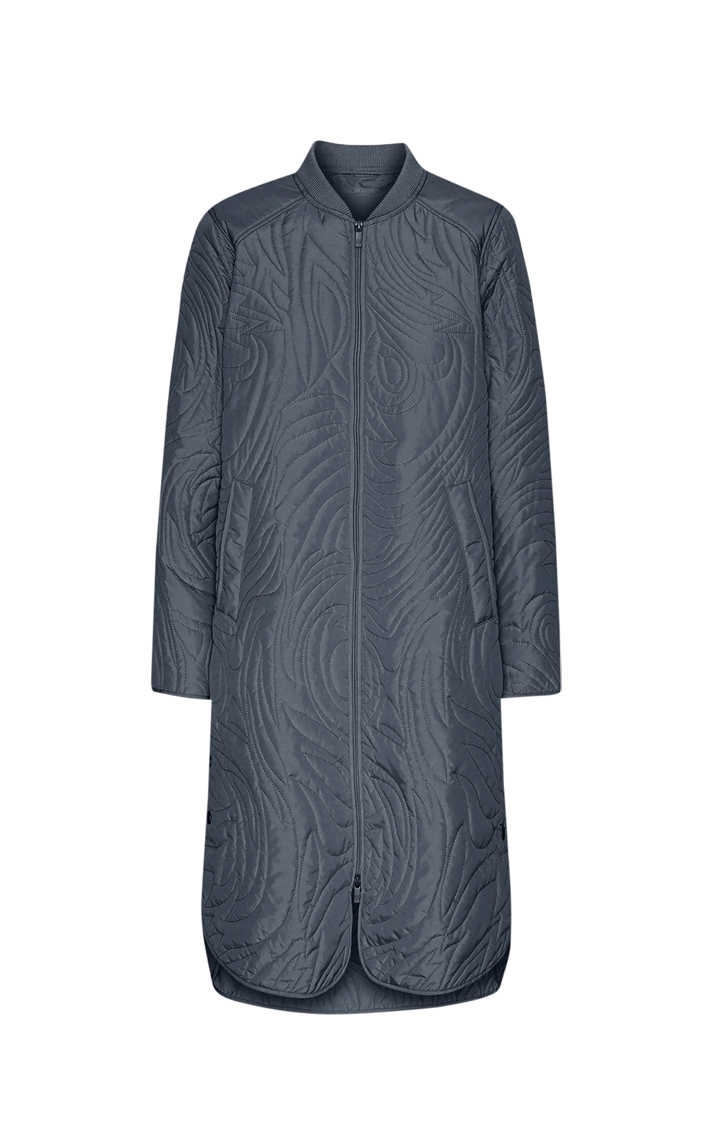 A long quilted jacket with an A-shaped silhouette, designed for warmth, comfort, and ease of movement. Lightly padded and slightly longer at the back, this style features side slits with logo snap button closures, a two-way front zipper, and soft rib at the collar and cuffs. A versatile transitional piece, ideal for layering under your raincoat on cooler days.