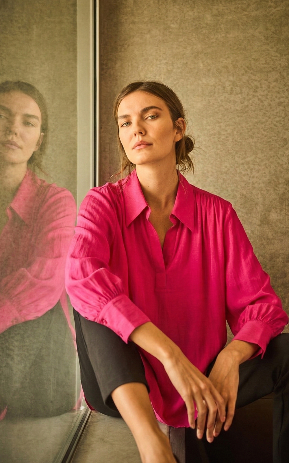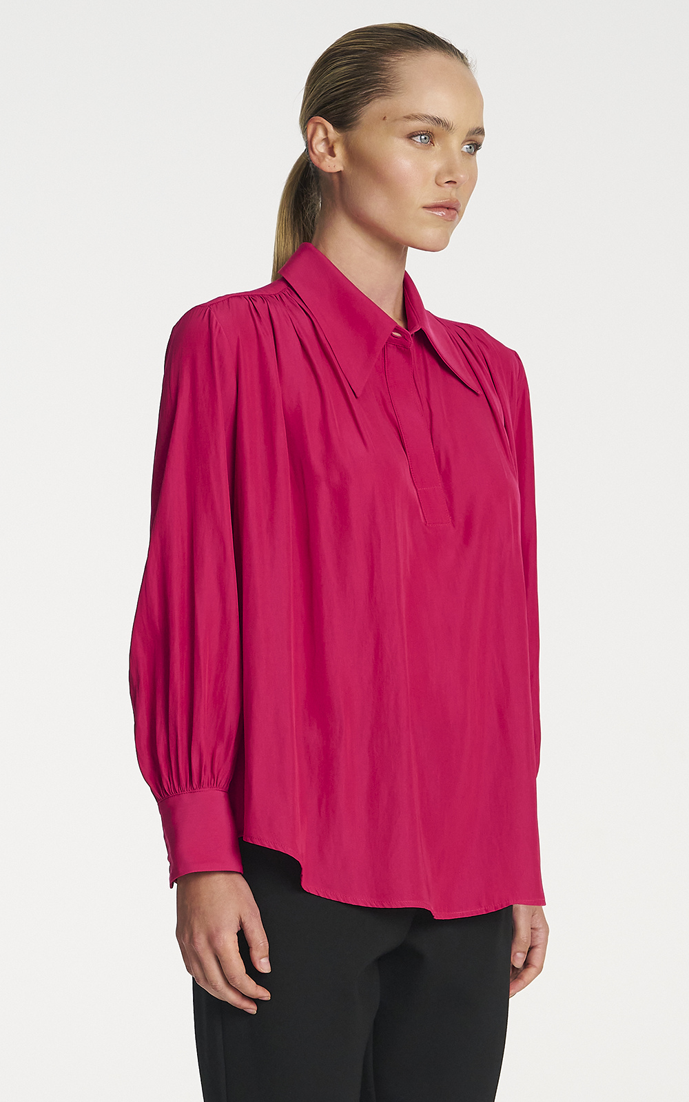 Crafted from Mela Purdie’s Mache, a fine denier technical weave with an airflow finish, featuring a relaxed fluidity and smooth lustre surface. The Gathered Blouse is an elevated take on a classic silhouette featuring gathering details on the shoulder seams and cuffs.