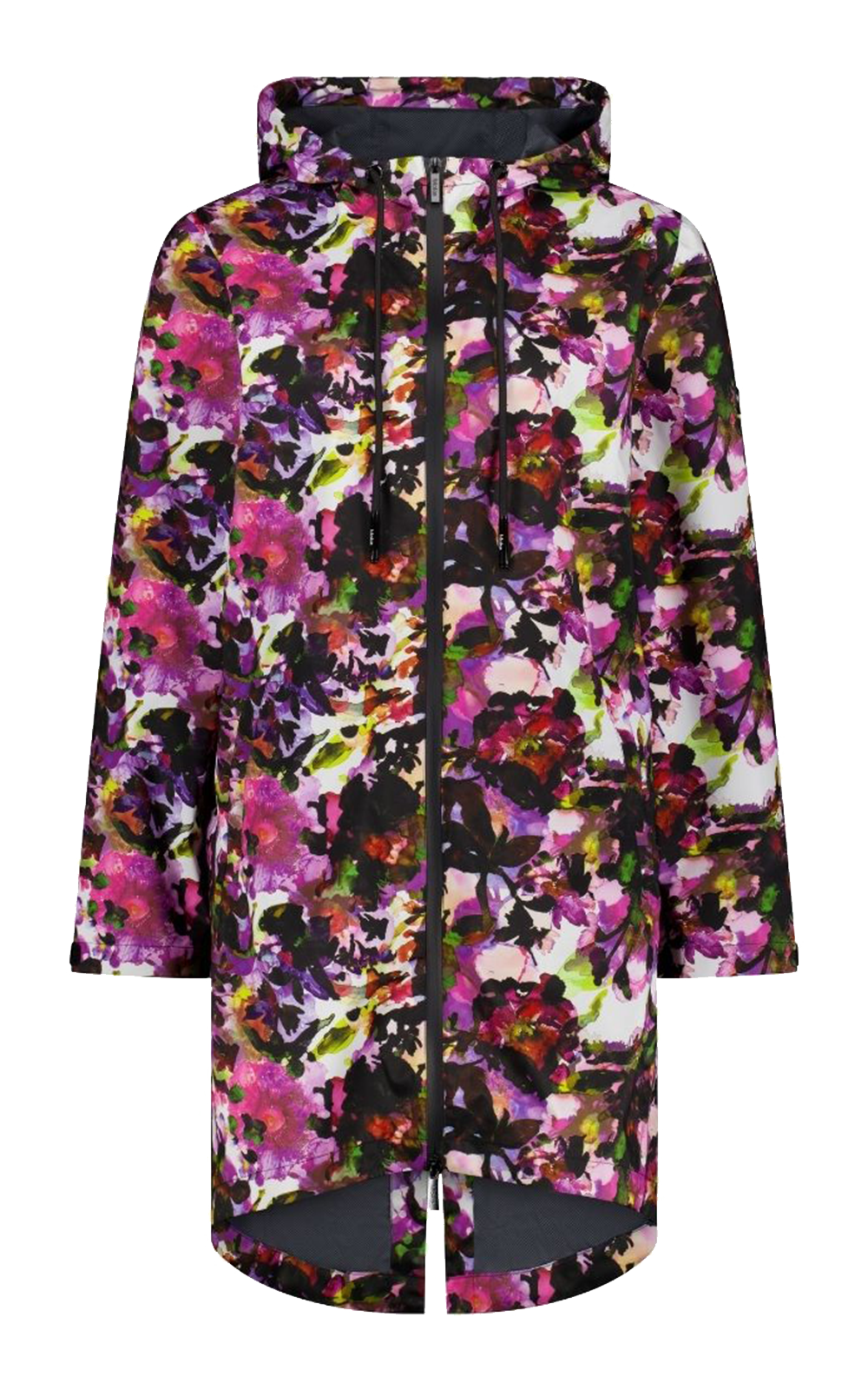 the Georgie Jacket by Moke is a 3/4 length fully waterproof seam-sealed raincoat. It features an exaggerated shirttail hemline, matte black hardware, 2 front zip pockets, and a handy drawstring hood. With a 10K waterproof rating, it even comes with its own little packable bag, making it the perfect raincoat for travel.