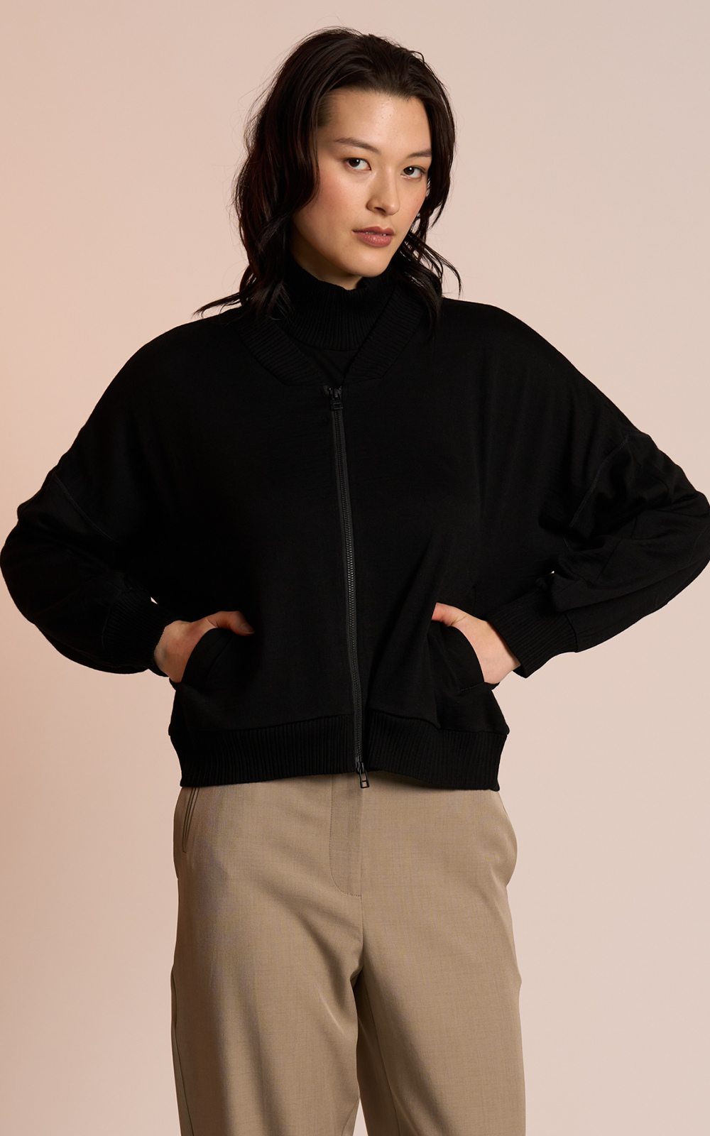 The In Flight Jacket by Neris is a relaxed-fit bomber crafted from 100% merino wool for effortless warmth and comfort. Finished with rib trim and practical front pockets, it’s the perfect elevated loungewear layer.