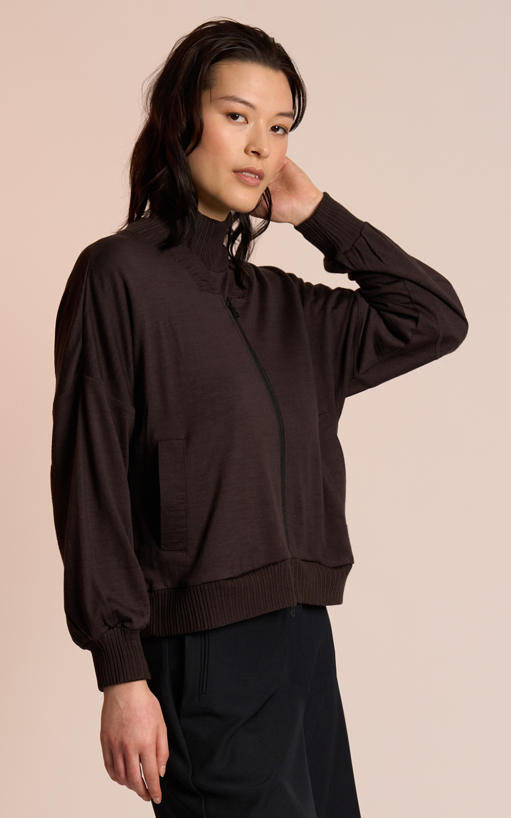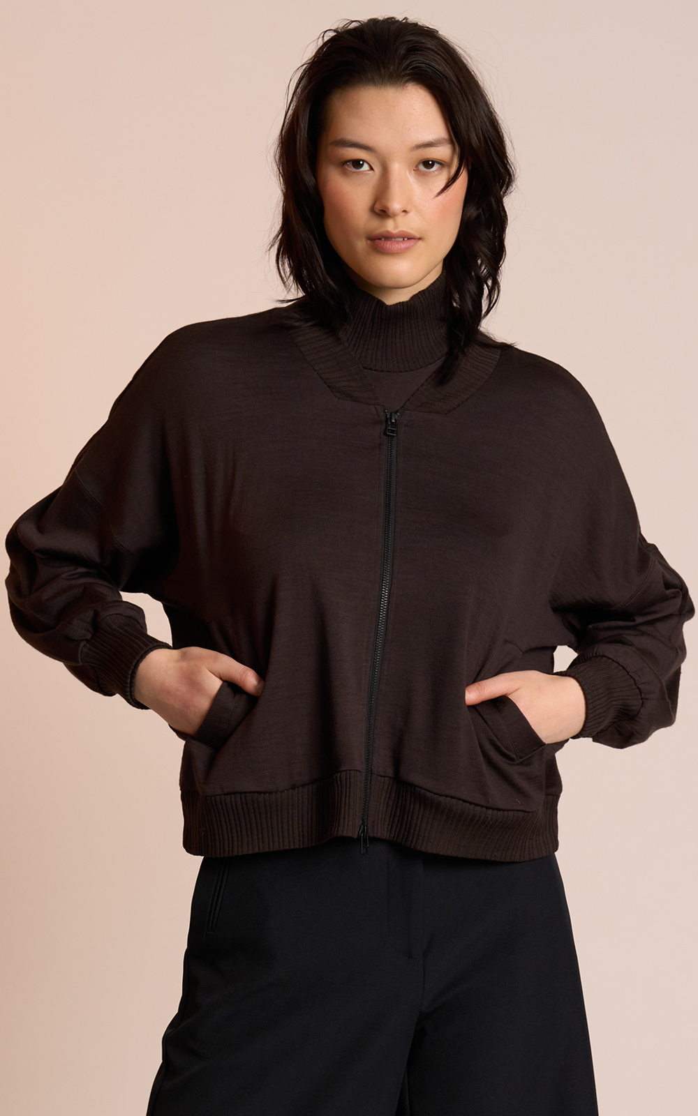 The In Flight Jacket by Neris is a relaxed-fit bomber crafted from 100% merino wool for effortless warmth and comfort. Finished with rib trim and practical front pockets, it’s the perfect elevated loungewear layer.