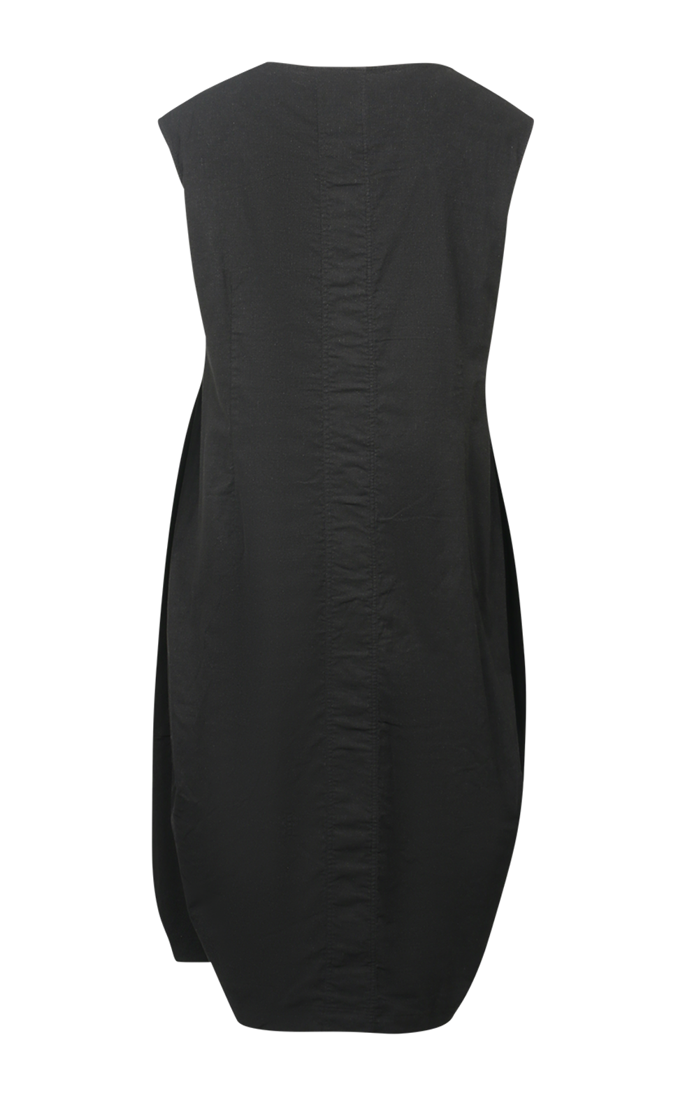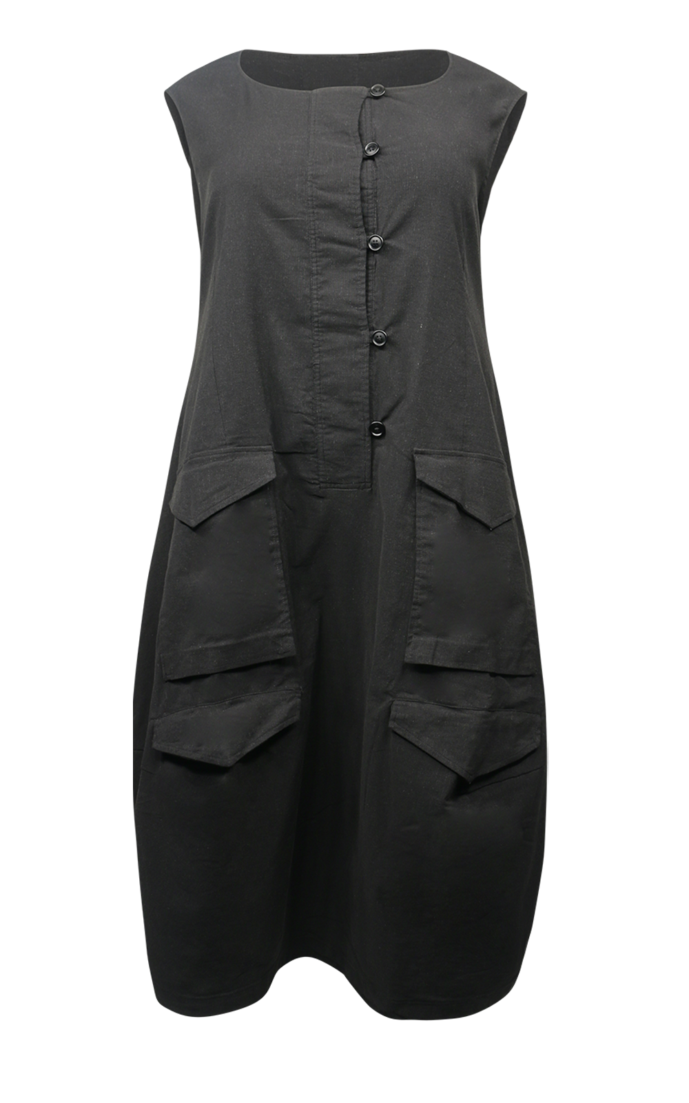 The Iris Sleeveless Dress by Rundholz is an easy-wear contemporary classic pinafore. Crafted from a quality mid-weight cotton and wool stretch blend which has a very fine grey fleck throughout, it is an easy-wear style with clever panelling creating a semi-fitted bodice flaring into a bold tulip shaped skirt. A tabbed button front and oversized flap pockets in the front give a fun urban edge. This versatile dress looks great for off-duty days when paired with merino tees under or cropped knits and sweats over – pair with tights and chunky boots or style back with a contrasting shirt and Rundholz Iris Jacket for your work days. A timeles gem. *General fit – M = 14, L = 16, XL = 18.