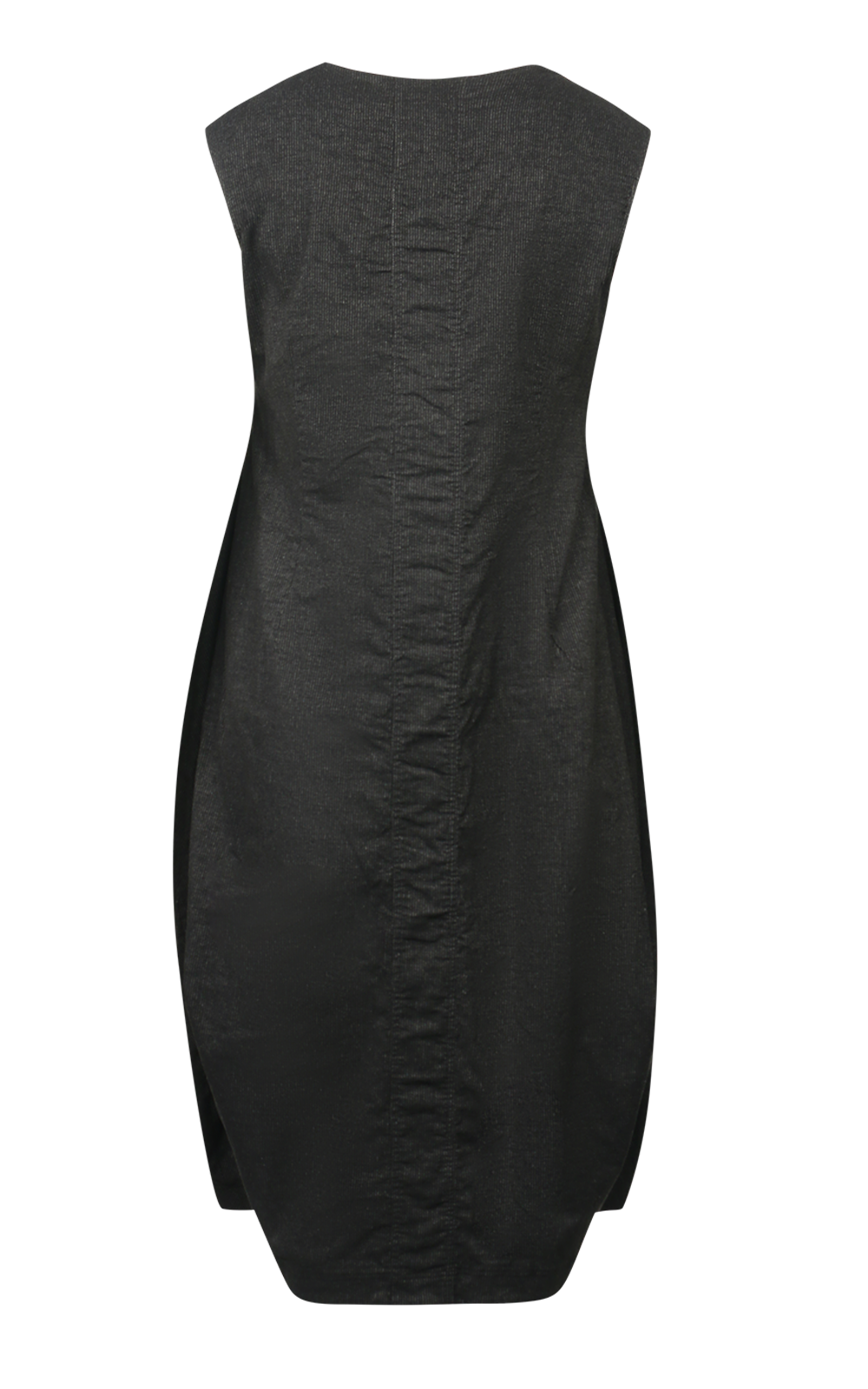 The Iris Sleeveless Dress by Rundholz is an easy-wear contemporary classic pinafore. Crafted from a quality mid-weight cotton and wool stretch blend which has a very fine grey pinstripe throughout, it is an easy-wear style with clever panelling creating a semi-fitted bodice flaring into a bold tulip shaped skirt. A tabbed button front and oversized flap pockets in the front give a fun urban edge. This versatile dress looks great for off-duty days when paired with merino tees under or cropped knits and sweats over – pair with tights and chunky boots or style back with a contrasting shirt and Rundholz Iris Jacket for your work days. A timeles gem. *General fit – M = 14, L = 16, XL = 18.
