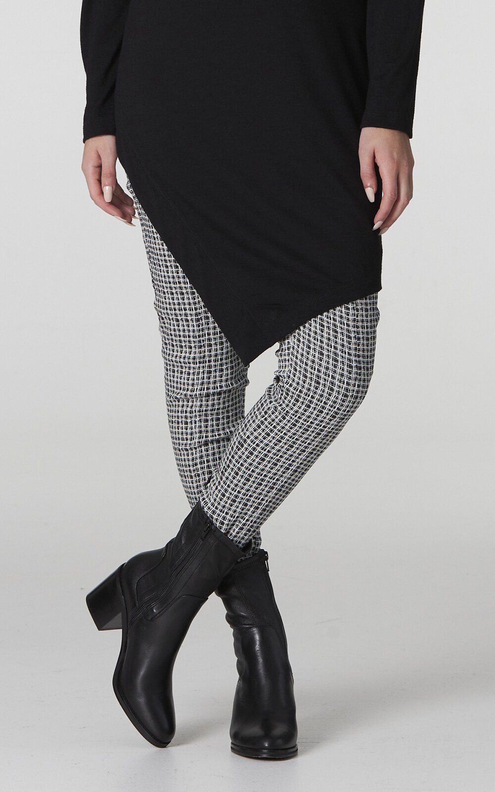 The Jacquard Cigar Pant is a must have this winter. Crafted from a stretchy black and white viscose print, selected for its form and structure. This great style work equally as well under a tunic or shirt with a cropped jacket or knitwear and sneakers for off-duty style.