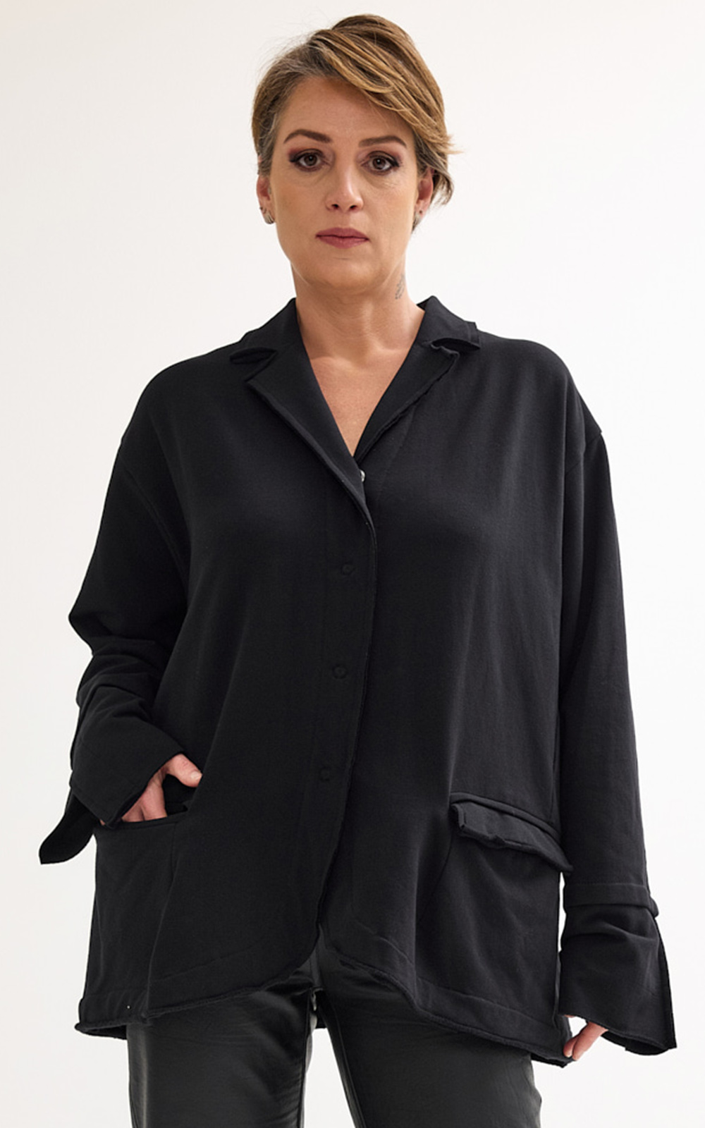 Designed and crafted in Türkiye, Zilbermans’ Kars Drop Vest is an edgy but versatile piece that you’ll be reaching for time and again – crafted from a quality cotton ‘sweat shirt’ fabrication. This pullover vest features a relaxed extended funnel neck, a double edged dropped shoulder creating a capped sleeve effect and open tabbed sideseams. This is all finished with raw edging at the hem and edges of the pockets and exposed side seams. Very wearable – this stunner works equally well over a coccon shaped dress or skirt as it does with a tee or shirt under with wide legged jeans or barrel shaped pants. A great transeasonal piece that keep you both snuggly and edgy year round. *General fit – size 2 = 14-16, size 3 = 18-20.