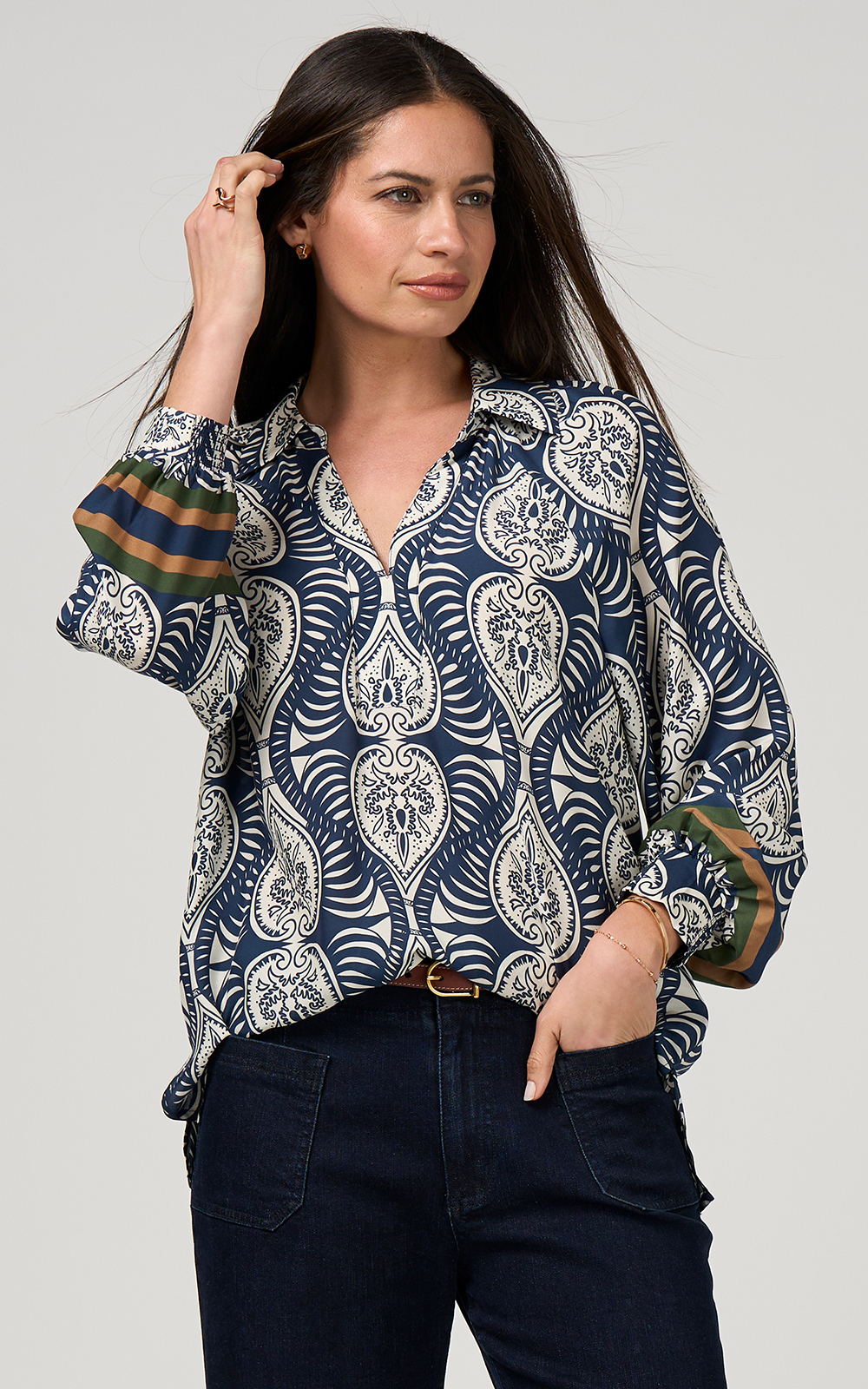 OBI’s Leather Panel Coat is a refined, contemporary take on classic tailoring. Crafted from a quality worsted wool with a light stretch, it features a sculptural collar, designed to be worn open for a relaxed look or buttoned and turned up for a more dramatic, sculptural effect; the hidden placket has been skillfully trimmed in vegan leather as has the vented pockets. Fully lined for comfort, drape and durability, the interior reveals a luxurious pinstripe lining of charcoal, butterscotch, and pewter. This is all finished with a unique cluster of buttons at the cuff giving the coat a tailored yet individual finish. A timeless wardrobe investment piece with a hint of contemporary attitude.