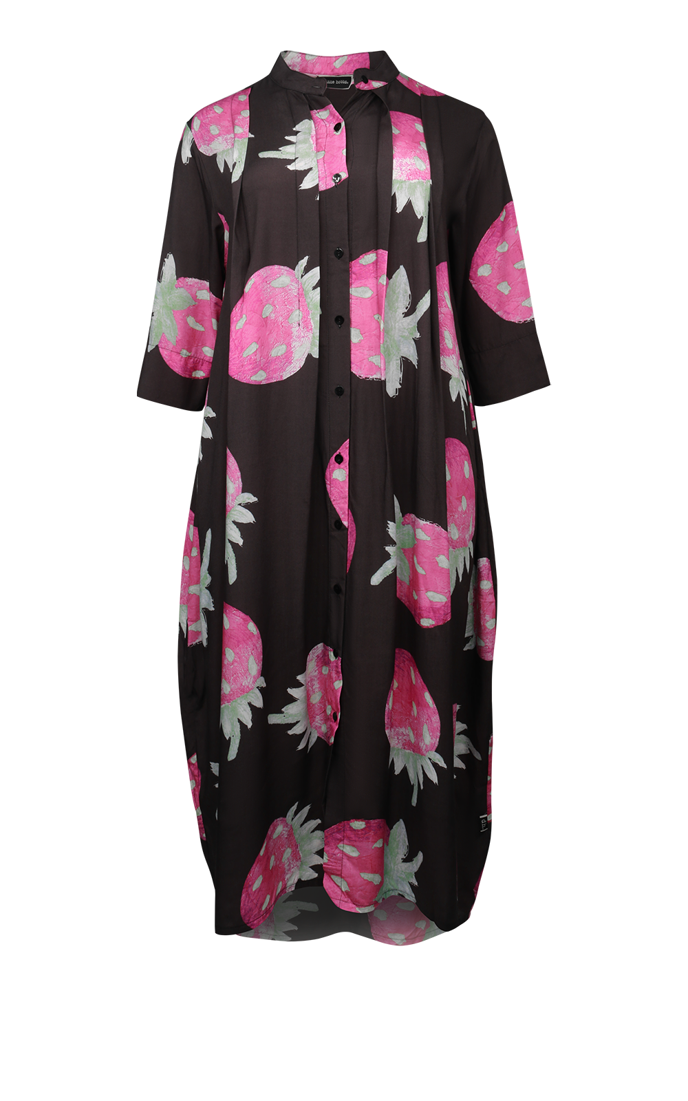 Moyuru’s Mito Dress is an oversized pull-on style made in a beautiful mid-weight cotton. It features a wide crew neckline, elbow grazing dolman sleeves, front welt pockets and a cocoon shaped silhouette. This stunner is enhanced by a stepped panel in the skirt, a rear hem split, contrast top stitching throughout, all finished with a unique Moyuru print. Perfect for warmer days – style simply with chunky sandals to soak up the sun or layer over leggings or tulip-shaped pants with relaxed knits on cooler days. Timeless! *General fit – M = 14-16, L = 18-20.