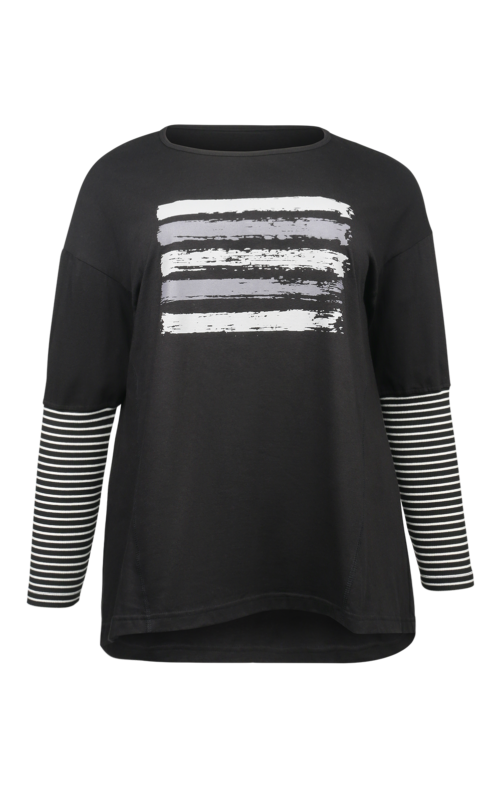 The Noir Top by Cashews is a long-sleeve tee with a chic boat neck and relaxed shoulders, finished with ribbed fitted sleeves for a neat touch. Stripe details along the sleeves and an abstract painted stripe print on the front give it effortless off-duty style. Soft, easy to throw on, and versatile, it’s the kind of top you reach for when you want laid-back polish without trying too hard.