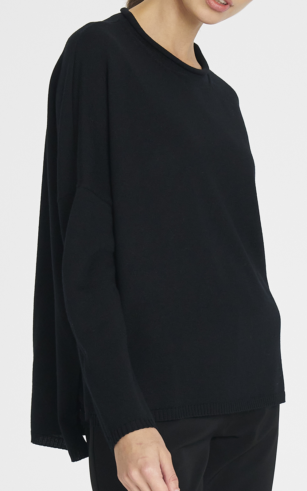 Crafted from Mela Purdie’s signature Double Fine Merino, the Panama Sweater offers lightweight warmth with a soft, fluid feel. Designed with a relaxed boxy fit and a low–high hem, it drapes naturally through the body, making it ideal for layering over shirts without bulk. The softly rolled neckline adds a modern, undone touch, while the breathable, comfortable merino makes it perfect for everyday wear, travel, or relaxed, polished dressing.