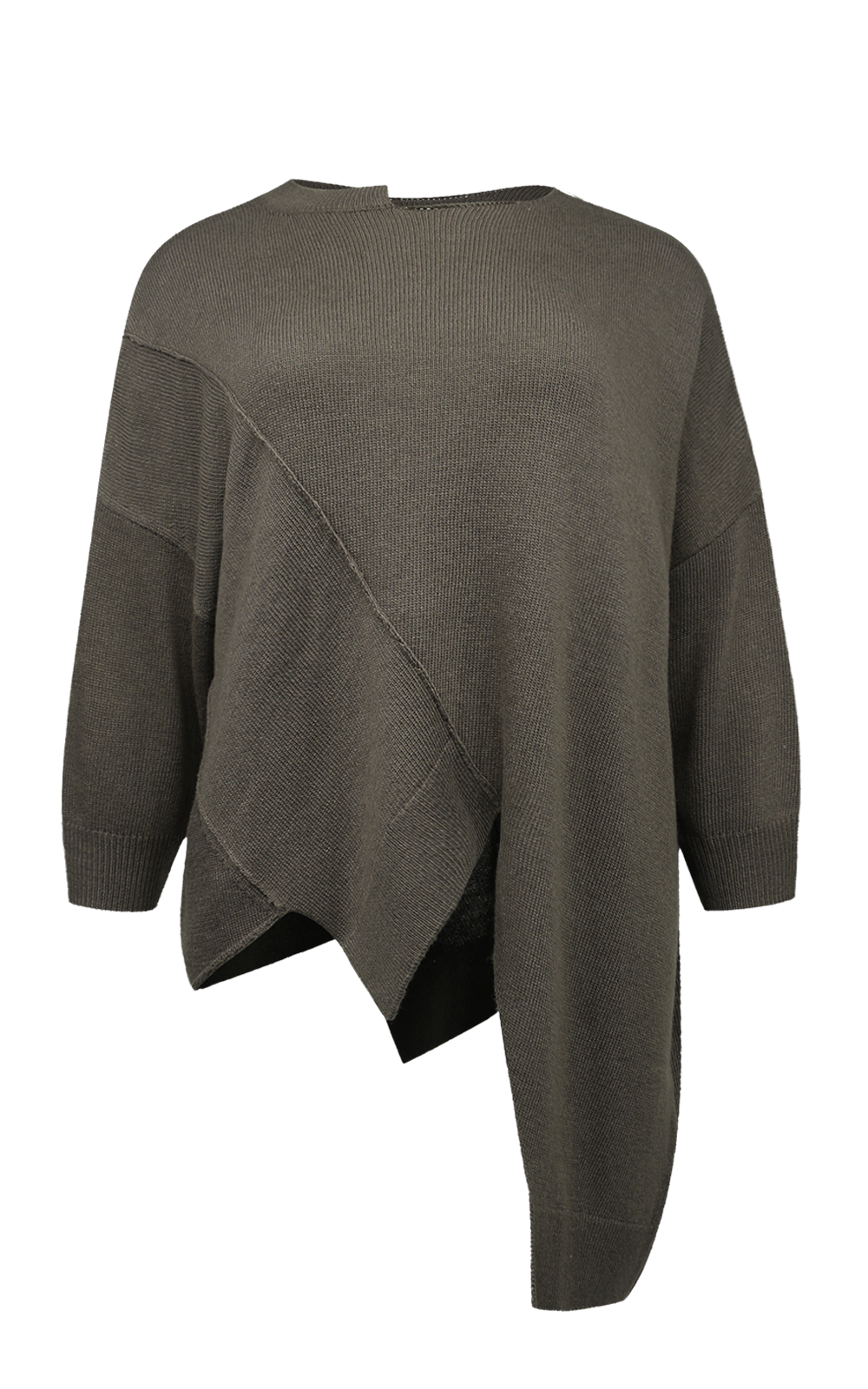Dogstars Rin Top-Jumper brings a quiet architectural feel to everyday layering. Crafted from a soft wool blend mid-weight knit, it drapes with an ease that feels relaxed yet intentional. The standout detail is the diagonal panelling throughout, framed with a partially ribbed crew neckline. and finished with an exaggerated asymmetic hemline front and back. This stunner is perfect to layer over a crisp cotton shirt or dresses and tunics. *General fit – L=14-16, XL=18-22.