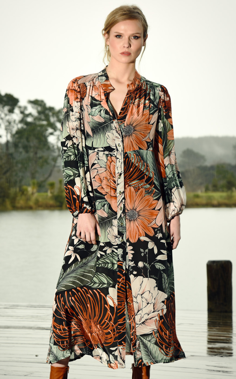 Explore clean silhouettes with the ‘Rise to the Occasion’ dress. Showcasing the rich hues of autumn in the ‘Vivid Imagination’ viscose crepe de chine fabric, this dress sports a subtly flared silhouette and full sleeves, finished off with elasticated cuffs allowing for push and puff styling. Perfect for taking you to the office through to your evening plans, this dress will ensure you look the height of fashion wherever you are.