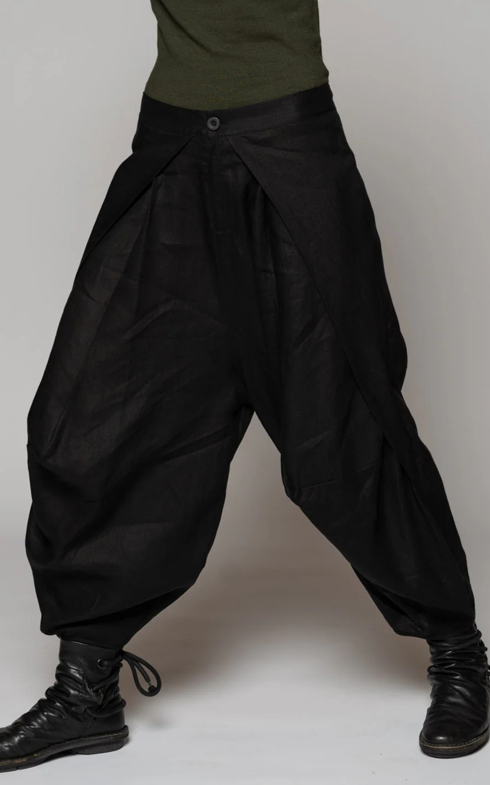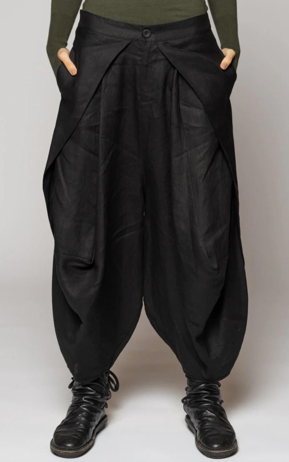 Dogstar’s Sancha Pants are rooted in Japanese tailoring sensibilities. Crafted from 100% linen with subtle lustre and natural drape; these stunning pants feature a deep folded panel crosses the front — a signature construction detail that anchors the whole silhouette. From this fold, fabric releases into long sweeping tucks that travel the length of the leg, pooling into generous volume before tapering at the ankle. Nothing here is rigid, everything is considered. The waistband sits flat at the front, fastening with a single button, while the back panel is fully elasticated, giving a great fit and comfort. Side pockets sit flush within the tucks; back patch pockets complete the utilitarian undertone. Perfectly transeasonal when paired with cropped tees, tops and shirts, or layer with merino tees, soft shirts and finish with cropped cardigans or jackets as the weather cools. Something very special.