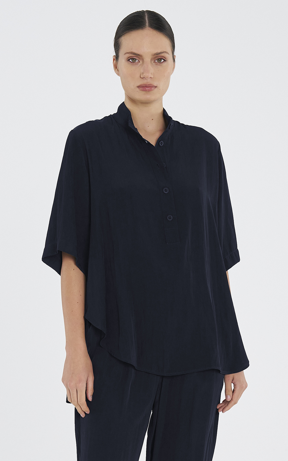 The Saville Shirt is crafted in Mela Purdie’s Lightweight Microprene in the sophisticated Saville Stripe, a crisp, cotton-rich fabric with high stretch, a polished finish, and yarn-dyed stripe. Featuring a crisp collar, pocket detailing, and a concealed front placket, this longline shirt offers an oversized, relaxed fit with a curved hem for easy layering. Made with European fabrication and designed in Australia, the Saville Shirt is a versatile, elevated wardrobe staple suitable for any look.