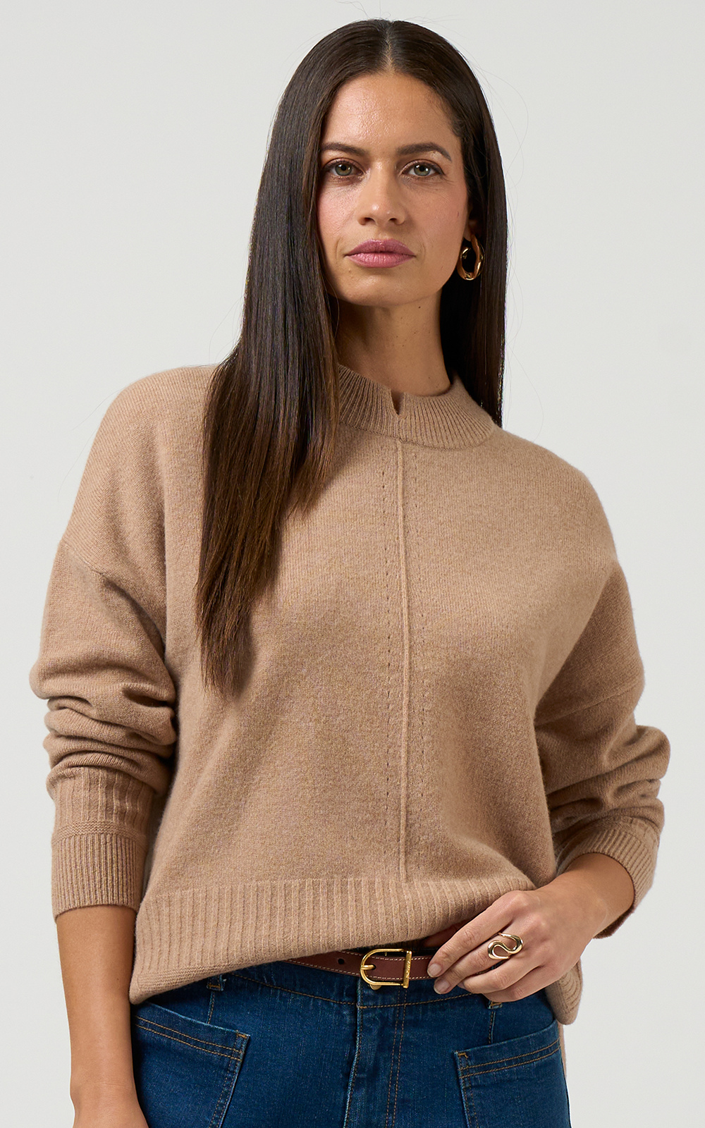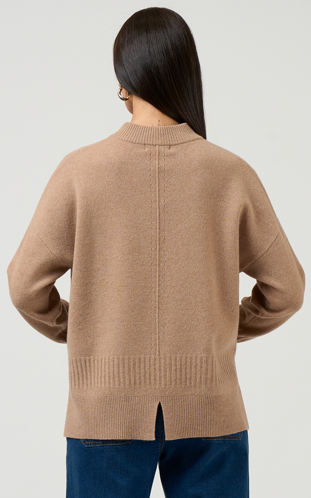 Relaxed fit turtleneck sweater in 100% fine merino wool, with deep modern rib detailing and cut-away side splits for an edgy look. Featuring pointelle design front and back, releasing into a back split.