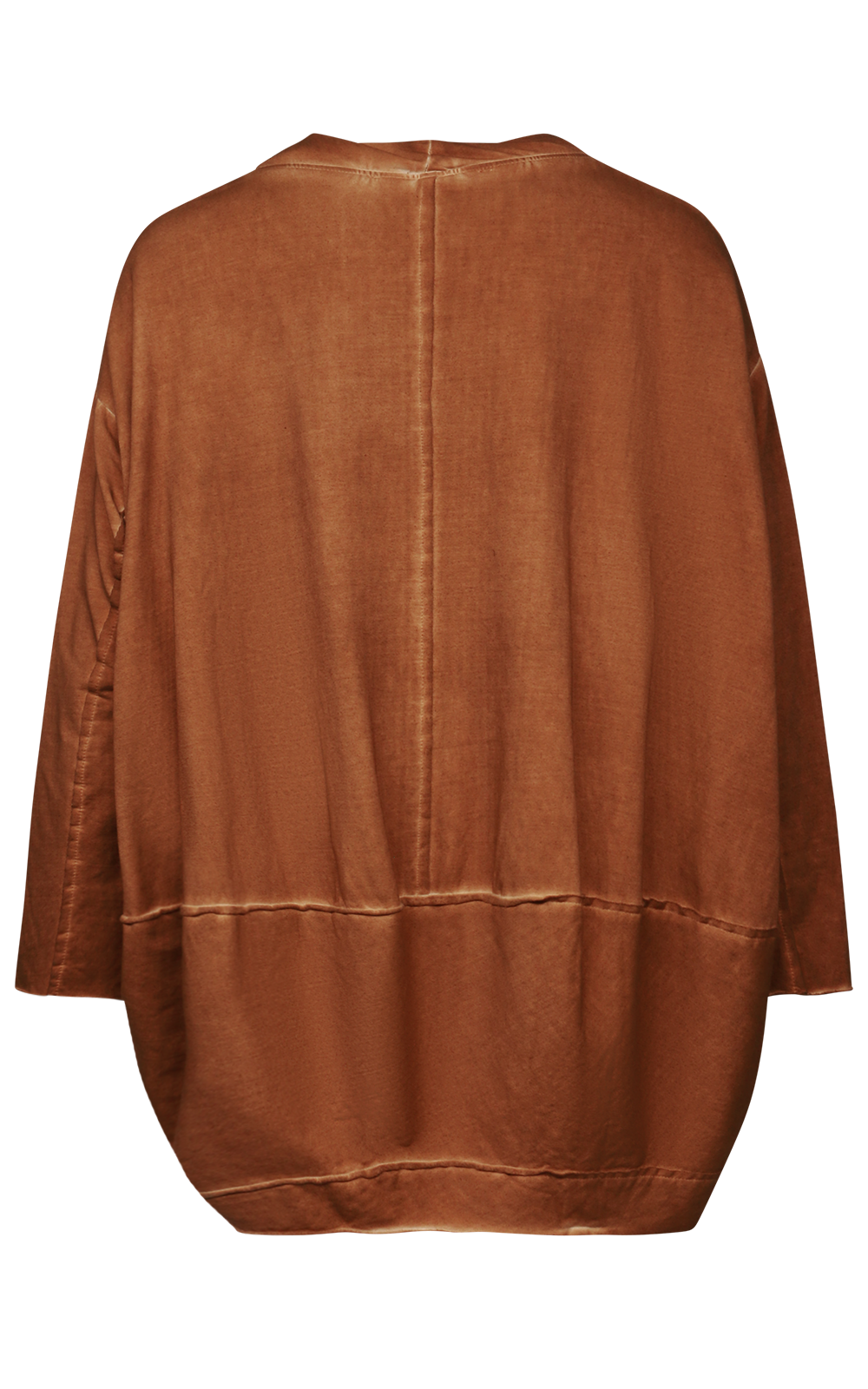 Zilberman’s fabulous Solmus Zip Pocket Sweat will add an effortless edge to your off-duty outfits. This cotton blend oversized elevated ‘sweat-shirt’ has been created using Zilbermans unique ‘oil-wash’ technique which creates a super soft finish with a vintaged fadeout effect around the raw-edge hem and seams, giving it a strong urban feel. Clever paneling creates a cosy cocoon shape with dropped shoulders, a relaxed cowl neck, and zip pockets for added functionality. Layer it over a high-neck top, pair it with barrel-leg pants, and finish the look with chunky boots and statement accessories to dial up the drama. *Note very roomy- general fit – size 3 18-24, size 4 20-28, depending on how oversized you like.”