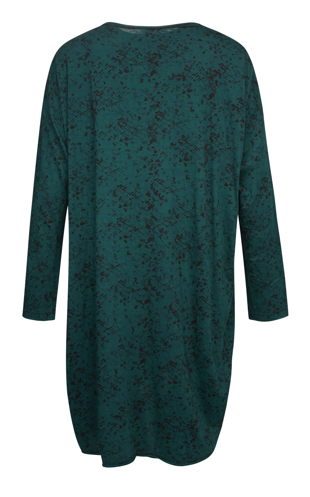 The Starlight Long Sleeve Dress is a very wearable style, with a Rundholz flock print on the front on top on the abstract printed fabric. This tulip-shaped dress can be worn on its own or layered with merino to wear in winter. Featuring dropped shoulders that run into tapered long sleeves, inseam pockets at the sides, and layered raw edge hems.