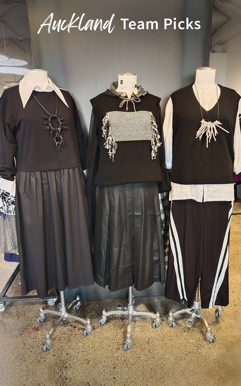 Michelle from our Hamilton store is styling her favourite new-season arrivals, featuring her all-time favourite legging – the Illusion Leggings by Understudy. For look one, she layers the Bosphorus Pocket Dress, with its removable scarf, with the Frankie Vest. Look two keeps things sleek and simple in the Urban Fold Dress. For look three, Michelle’s weekend brunch look is the effortlessly cool Denim Julian Dress. She’s accessorised with the Steel Flat Bead Glass Long Necklace.