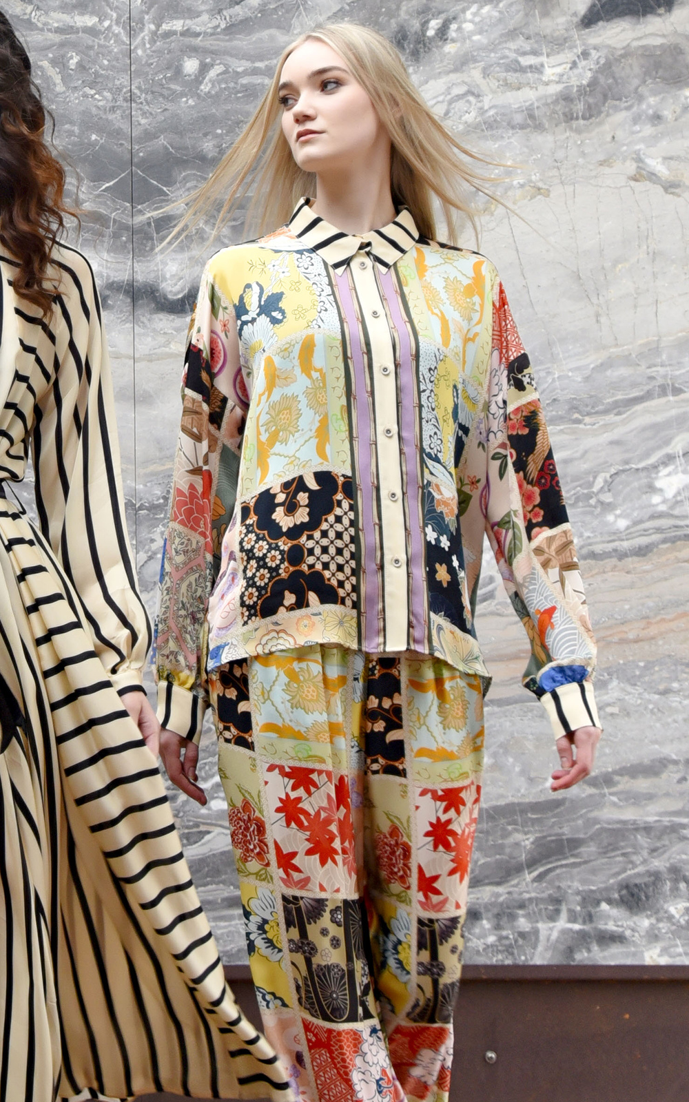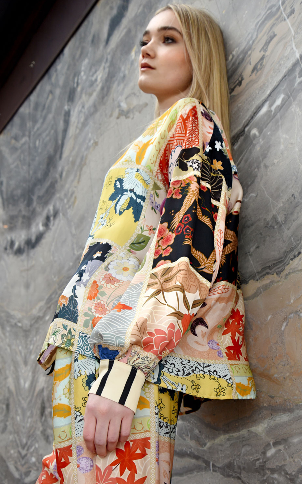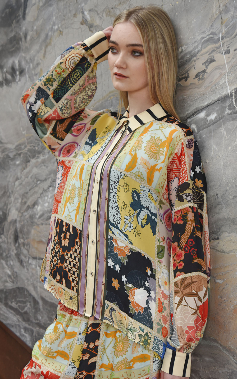 Breezy elegance defines the ‘Under the Sun’ Shirt, crafted in our ‘In the Square Tonight’ viscose satin. A button-through front and classic collar offer timeless structure, while drop shoulders and blouson sleeves bring relaxed, sculptural volume. Finished with a fixed cuff and button fastening, it’s a versatile piece that pairs effortlessly with skirts, pants, or layered looks.