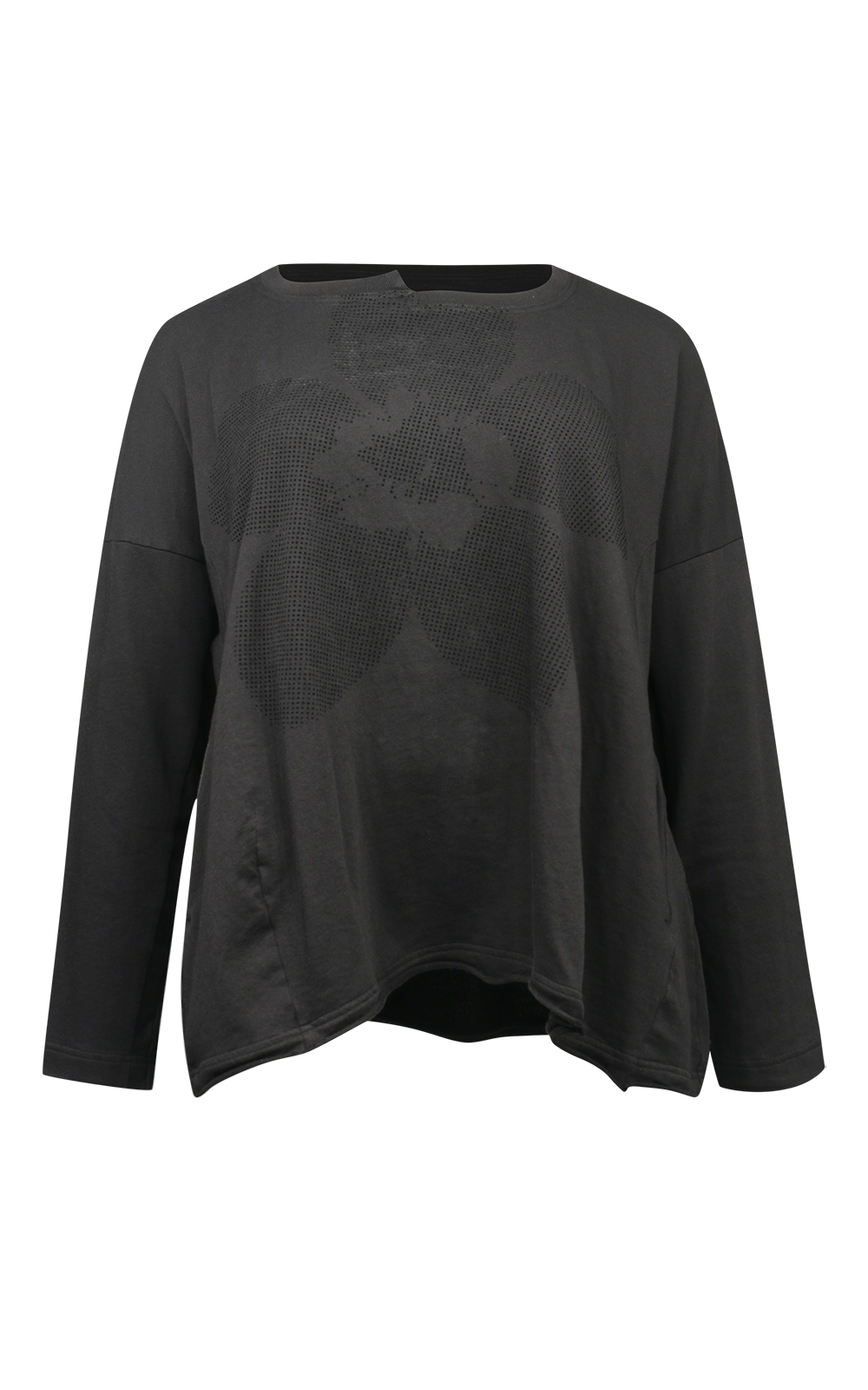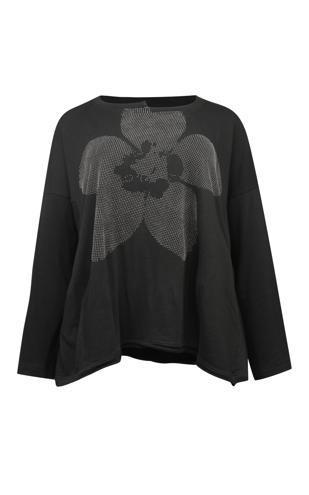 Rundholz Black has created a fantastical range for the season. The Violet Top is Athleisure elevated; an oversized style crafted in a soft cotton knit, it features a scooped double rolled edged neckline, a dropped shoulder with extended arms and a unique Rundholz pop-art floral graphic on the front. Update your off-duty wardrobe with this adorable tee that is perfect when popped on over a longer cami, tunic or longline shirt, add joggers, barrel jeans or style up by adding cocoon pants, a soft coat and chunky socks and boots. *General Fit – S = 14-16, M = 18-22.