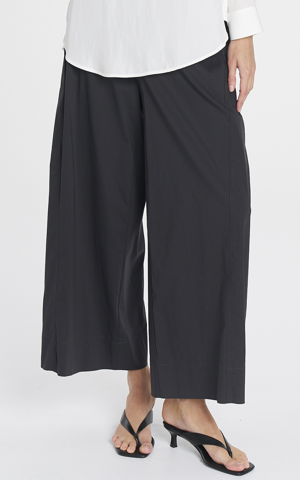 Crafted in Mela Purdie’s Lightweight Microprene, A crisp, cotton rich fabric with high stretch and a polished finish. The Wide Cross Pant features barrel shaped panel seams in a wide leg silhouette.