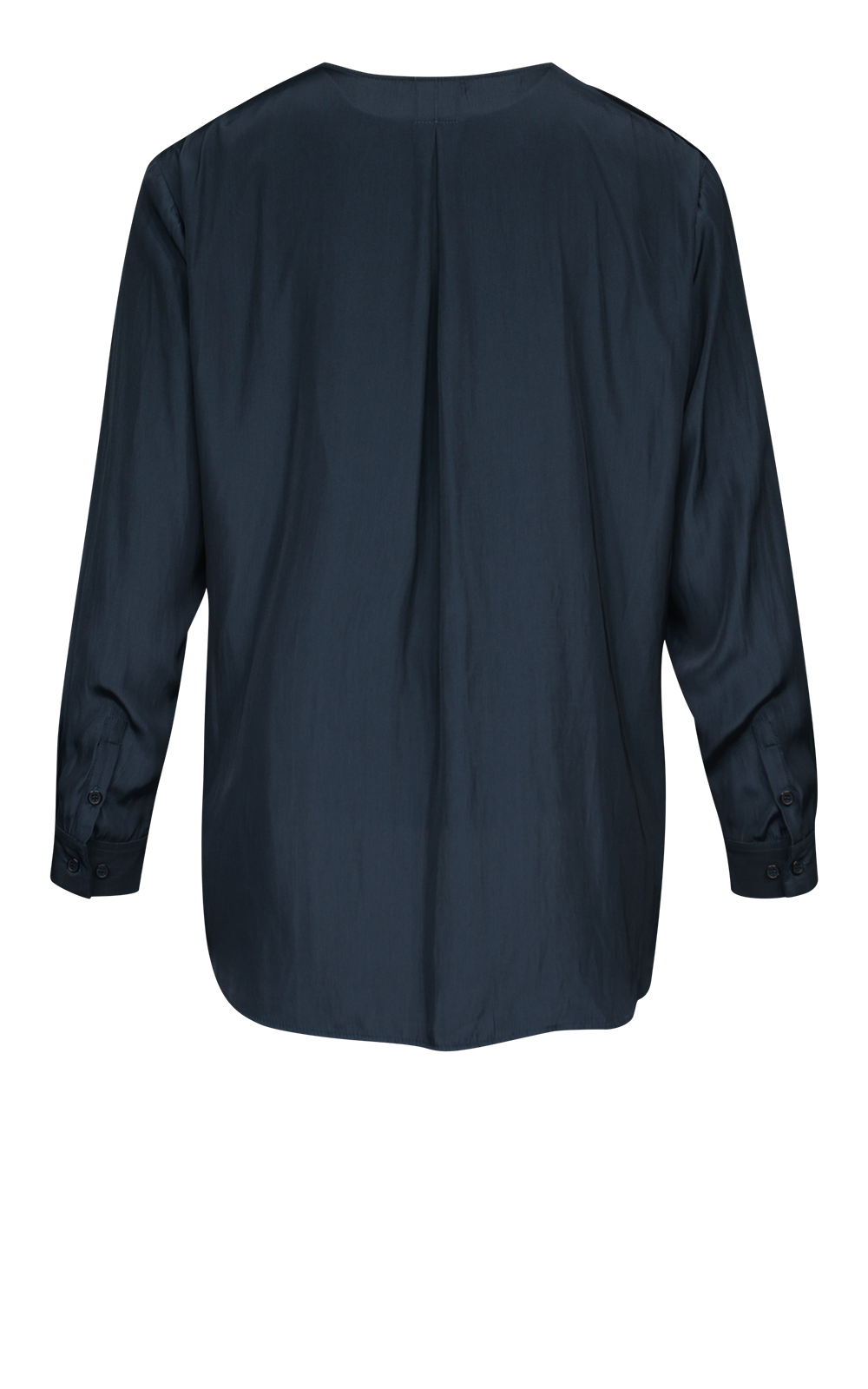 Crafted from Mela Purdie’s Mache, this blouse showcases the fabric’s relaxed fluidity and smooth, lustrous finish. The Wrap Ripple Blouse features high-impact frill detailing at the neckline, wrapping elegantly over one side to the hem. Designed with a soft V-neckline, shirt cuffs with button closures, and curved hemlines, it’s a refined yet effortless statement piece.